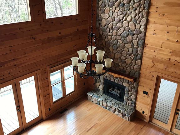 Great cabin home with four bedroom and three have there own fireplace. Great room has a fireplace as does the game room in the finished basement. External fireplace in the screen porch at the side of the house. Lots of glass on the front of the house for the mountain view. Easy access to hiking, lake and rivers as well as the town of Blue Ridge.