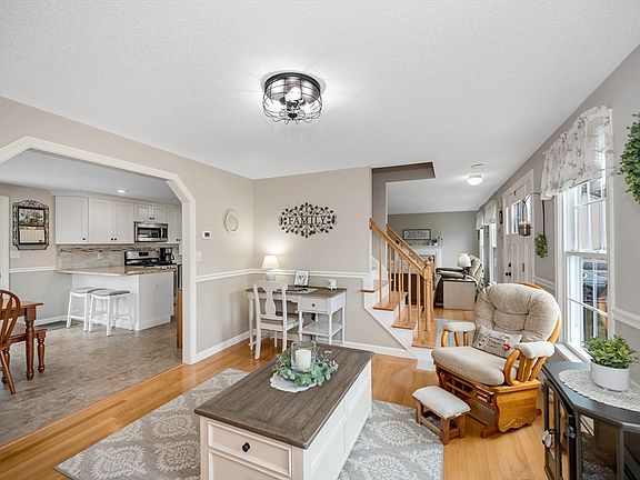 Wimbledon Crossing Classic New England Colonial! Step into your Personal Sanctuary, where every Detail creates an Oasis of Opulence and Tranquility. A Manicured lawn, embraced by a Charming fence, Guides you towards Sun-drenched Interiors boasting Polished Hardwood floors. The Heart of the Home, a Remodeled Kitchen w/sleek cabinetry, Granite countertops, & Breakfast Bar awaits dinner Gatherings. Retreat to the Spacious Main Bedroom w/Cathedral Ceiling & W/In Closet! Tastefully Remodeled Bathrooms. Outside, a Trex deck w/Awning invites Al fresco dining amidst Lush surroundings. 28 head Sprinkler system. With New Windows, a Granite Post Mailbox, and New Fence and Deck, this Home exudes Modern Elegance. A Lower Level Office adds Functionality. Ensuring Security and Peace of mind, a Newer Roof crowns this Haven. Situated near Schools and Trails, this Residence blends Convenience w/Serenity. Don’t miss the Opportunity to Claim this Curated space—Immerse Yourself in its Allure!