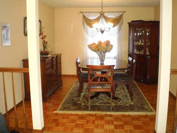 Thomasville model contemporary colonial featuring 2236 sq ft, 1st floor master bedroom, cozy sunken family room w/gas fireplace & pocket door to kitchen. Kitchen has 2 PANTRY CLOSETS, as well as a center island, ceramic tile flooring & sliding glass door to deck. Living room & formal dining room have parquet oak flooring, and dining room has beautiful chandelier. Garage is oversized, 2.5 car w/loft and mudroom entry into home. The lot is private & wooded, and basement is full 12-course. Hi-E furnace is 10 yrs old, & home has central air. Lots of space and options in this home!!