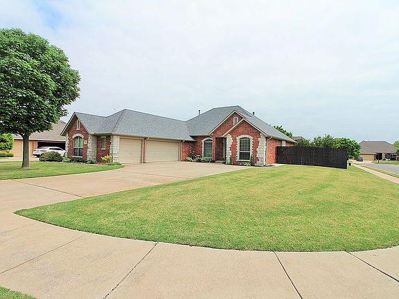 Darling home on corner lot. This spacious home is located on a large corner lot in the highly sought after neighborhood of the Villages of Stonebridge. This home is just minutes away from award-winning Cimarron and Memorial schools and includes 3 bedrooms, 2 1/2 bathrooms, and a study. Updates include beautifully painted woodwork/cabinetry, a new roof, a new hot water tank, and a new garbage disposal! This home includes granite countertops, stainless steel appliances, gas cook top, gas burning fireplace, ceiling fans, and an oversized back yard with a storage shed. The three car garage has a walk in storm shelter tested for F-5 and the home has a sprinkler and alarm system! The home is within walking distance to a community pool, recreation center, and playground. Easy access to Broadway Extension and Kirkpatrick Turnpike. Schedule a viewing by emailing Viewing@CorkPM.com with your first and last name(s), phone number, address of the property you would like to view and the best days/times for a viewing.