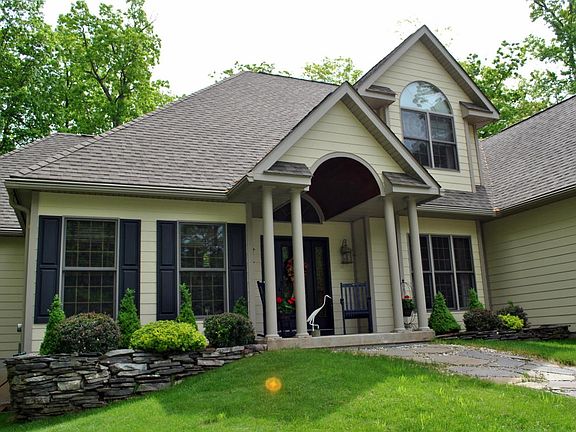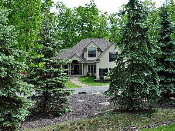 Stunning contemporary situated on over an acre of land overlooking a championship golf course in prestigious Tanglwood Lakes. This custom built home features an open floor plan with redwood plank flooring, radiant heat, massive floor to ceiling stone fireplace, 1st floor master suite, modern kitchen with pantry and an additional guest quarters suite with its own bathroom and separate staircase access - making it a technical 3+ bedroom home. This home is the ultimate buy for both entertaining or for family living in the Lake Wallenpaupack area. Close to Hawley, I-84, Scranton and NYC. Locally you will enjoy golf out your back yard as well as access to Lake Wallenpaupack and Lake Tanglwood.