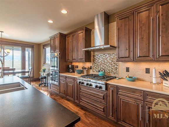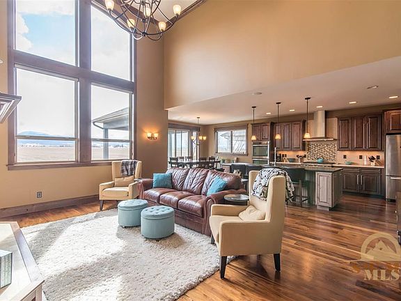 Gorgeous 2012 Parade home in Alder Creek. Home backs up to open farm land to the south & unimpeded views of the Gallatin range &Spanish Peaks. This home is also packed w/numerous high end finishes & upgrades; including custom trim & door package with 8-inch Alder baseboards & crown molding, walnut HW floors, solid stone countertops throughout, air conditioning, home theater room with 100-inch projection screen & custom landscaping. The great room with vaulted ceilings gets flooded w/great natural light!