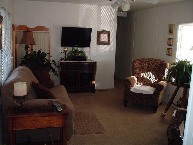 Well cared for home in adult park, (55+), with newer laminate flooring Swamp Cooler and paint. Plenty of storage with nice pantry in kitchen. Wonderful landscaped fenced back yard with out building! RV/Boat Storage available at park. Corner Location! MONTHLY SPACE RENT INCLUDES WATER/GARBAGE/SEWER! OWNER WILL CARRY!