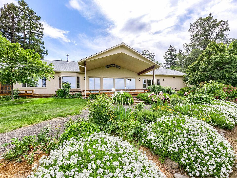 Sited on a beautiful rural Talent EFU lot of 5+ tranquil acres w/panoramic views, yet just 2 miles to downtown Talent & 7 miles to downtown Ashland, this custom, single-level home has been beautifully updated. The 2,905SF main home has 3 bedrooms, bonus room, sunroom, office & 2 full baths + a 4th bedroom/guest room w/add'l bath & private entry. The large galley kitchen has ample seating, 2 pantries, wine fridge, commercial fridge/freezer & induction range. The open dining & great room areas feature vineyard & mountain views & wood stove + screened-in porch overlooking the koi pond. Laundry area w/storage + 2 car attached garage w/ ½ bath & storage. An add'l 2-car garage, RV garage + add'l parking w/easy in/out access. EFU zoned, solar powered entry gate, propane tank & back-up generator, 5,000 gal holding tank to irrigate gardens, 4 acres of TID rights. An add'l driveway allows access to the barn w/tack room, hay barn & 3 covered stalls + riding arena. See attached amenity list.