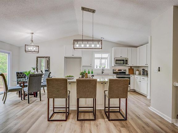 Beautifully renovated reverse 1.5 story with open floorplan & vaulted ceilings. Stunning kitchen with all new cabinets & countertops plus a huge center island. Lots of natural light & luxury vinyl plank flooring throughout the main level. New carpet in all bedrooms and basement too. New vanities in updated bathrooms & new light fixtures throughout too. New HVAC & Roof + fresh interior paint too! Easy 1st floor living features 3 bedrooms & 2 full baths on the main level + the finished lower level has a large recreation room, 4th bedroom, & full bath. HUGE deck, In-ground pool, & private backyard backing up to greenspace.