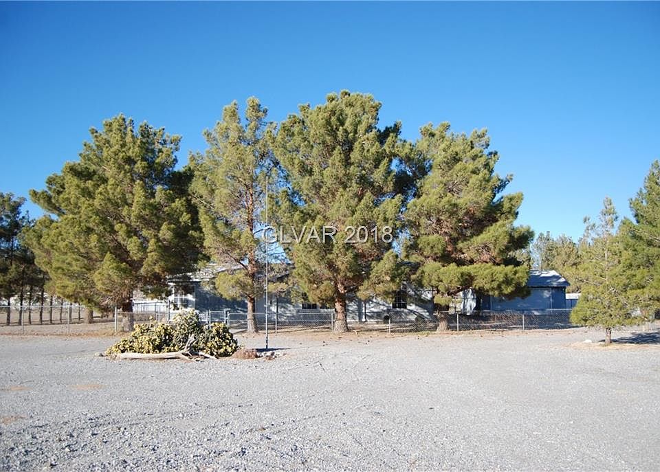Private Location on the South side of Pahrump Great for Las Vegas Commuter. Lots of Trees Trees Trees provide a peaceful setting. Fresh interior paint and carpets just waiting for you. Two Garages make this a rare find. Fenced and cross fenced provide plenty of room for animals.