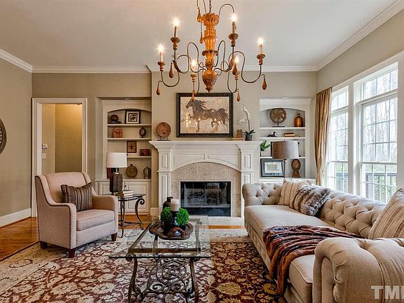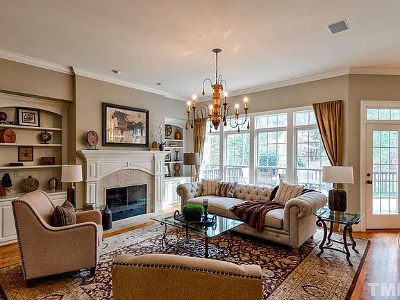 Stunning all brick home on 1.84-ac wooded lot. 10' ceilings, lovely hdwds, transoms, plenty of natural light & extensive arch details. Elegant formal dining. 1st flr guest suite w/full bath. 2 gorgeous gas log frpl's - liv & fam rms. Gourmet kit w/island/bar, 6 burner gas stove, granite counters & SS appl's. Spacious MB w/trey ceiling, WIC & luxurious bath. Main flr office, 5 bdrms, huge 2nd flr bonus, lrg 3rd flr bonus w/full bath & WIC-great teen suite. Screened Porch, deck & patio. Conv to Falls Lake