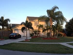 A charming 4br/2b/1hb POOL home on .29 acres corner home. This 2 story boasts engineered wood-like flooring on first and second floors along with tile and carpet. Giant family room ! French doors in Master bed. All bedrooms upstairs. 2 baths renovated, A/C runs like a charm. Screened enclosed patio with a POOL . Brand new pool pump$500.Extra large yard for kids and dogs to run around. NO HOA!! Wellington ''A'' schools,close to Mall, restaurants, shopping, airport, polo field. Money magazine rated Wellington in the ''Top 100 Best Places to live'' , 2010.(Owners will offer 200sq ft of engineered flooring , perfect for master and ensuite bedroom.)
