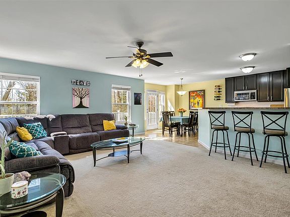 This home is located on a quiet street minutes from Historic Downtown Cottleville. The open floor plan of this 3-bedroom, 3 bath home flows from the great room into the upgraded kitchen and breakfast room with 42-inch custom cabinets, stainless steel appliances. You will also find a half bath with pedestal sink on the main floor. Upstairs, the generous master suite overlooks the backyard, and features two walk-in closets. The master bath has dual sinks, separate tub and shower, and private water closet. All bedrooms have ceiling fans. Never carry laundry up and down the stairs again, with the convenient 2nd story laundry room. Partially finished basement with recreational area, rough in for a full bath & ample storage space. Exterior features a covered front porch, two car garage with coach lights, vinyl siding, and enclosed soffit/fascia. The back deck boasts a peaceful view of the beautiful yard backing to woods. Close to walking trails, dining, shopping, and schools