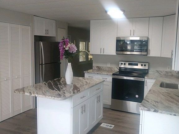 "Welcome Home!!" Move right into this beautifully renovated Mobile Home in Birchwood Mobile Home Park. Spacious 2 Beds, NEW Eat in Kitchen w/ Stone Counters., Large Island offers additional seating w/ additional dining area. New Stainless-Steel Appliances. Laminate Flooring throughout, 2 spacious bedrooms. NEW full bathroom with beautiful Tile Flooring. NEW Heating and Electric systems and New Vinyl Replacement Windows! Enjoy outdoors on your New Deck or on your patio overlooking the nicely landscaped yard. Add to your living area with the Large enclosed porch, perfect for entertaining. All this and a Great Lot location in the park!! Easy Highway Access! Showings start immediately!! Don't miss out on this great condo alternative!! Monthly Park rent is $475 includes water, sewer, taxes and road maintenance. Owner is responsible for the care of their own Lot, driveway, steps etc.