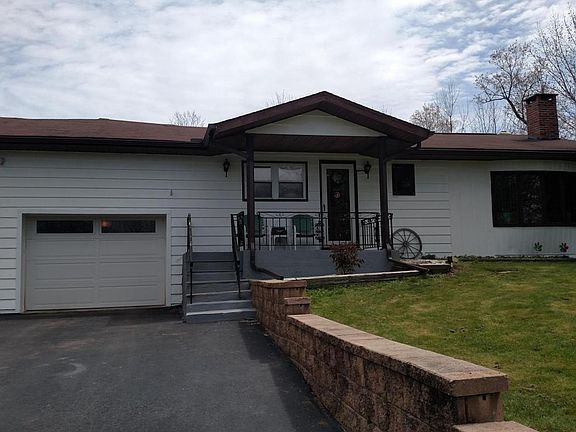 Unique layout in this lovely home.Move right into this 3-4 bedroom,2 baths, raised ranch,with wood burning fireplace and wood burning stove, on 1 acre.Heated sunroom. Family room, wet bar and bedroom in lower level. You'll be surprised at the room in this lovely home,it's not just a drive by!!Freshly painted exterior, now white.