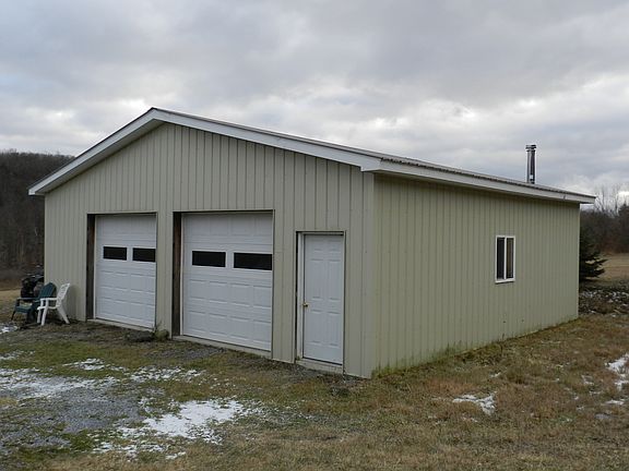 Nicely maintained 4 BR home on 22 acres located in a secluded, quiet, area a mixture of both woods and open land. The main floor has large open kitchen and dining room, sliding glass doors leading to deck that overlooks the back acreage you own. Recently remodeled 1st floor BR and added HW flooring. As you move to the 2nd floor you will find the master suite with hardwood flooring throughout, jacuzzi tub, shower and plenty of closet space. The basement has a finished bedroom, laundry, man cave and plenty of workshop space as well as double doors that open to large back yard. Large 2 car garage for auto and toy storage as well as plenty of work space. Maintained hunting grounds for deer, grouse, bear, turkey and many other wildlife along with a 285' shooting range already set up shoot from the porch. Woodstove currently used for heat in both house and garage there is plenty of wood in the acreage to supply for many winters of heat.