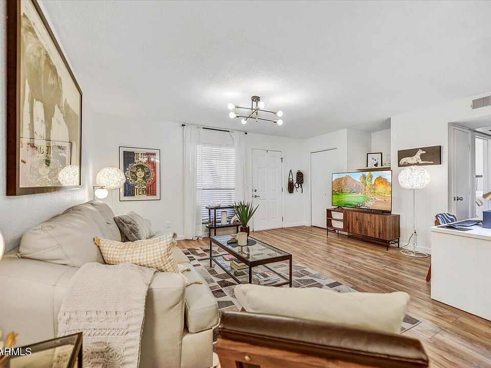 Adorable ground floor corner unit in a gated Phoenix community. This move-in ready condo is ideal as a pied-à-terre or second home. Renovated in 2016, it features a washer & dryer and is in excellent condition, showing like a model home. Enjoy easy access to the community pool and the convenience of being in a secure, well-maintained complex with low HOA fees.