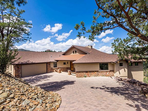 Owner/Agent Home in the Pines of Prescott. Less than 2 miles to Shopping and the Courthouse Square! Outstanding Mountain-VIEWS. 4368 square feet with 4 Bedrooms, 3.5 Bathrooms, 4-Car Garage + Den. Has 24' Vault, Beamed Ceilings, Massive Windows facing Thumb Butte MOUNTAIN, Engineered Hardwood Flooring, Stacked Stone Gas Fireplace w/Blower, Huge Great Room, 8' Solid-Core Alder Doors, 61/2'' Knotty Alder Baseboard, Triple-Pane Pella Windows and Doors(Stain Grade Interior/Metal Exterior), Custom Window Treatments, & High-End Lighting throughout. Fabulous Kitchen with Knotty Alder Cabinetry w/Granite Countertops, Stone Back Splash, Stainless Steel Thermador Oven, Microwave and Dishwasher, Cont.....
