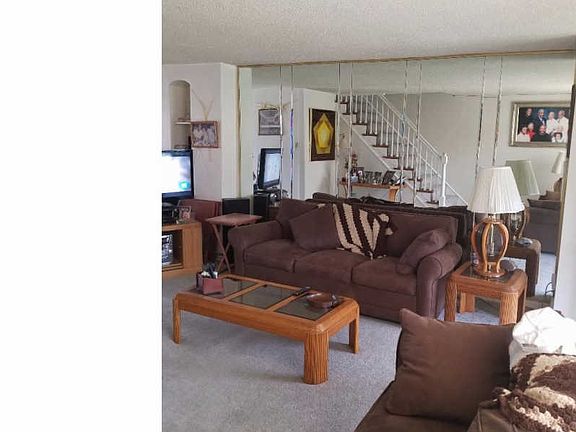 Welcome to this well maintained home. Living Room with mirrored wall, dining room with a sliding glass door leading out to a large deck. - Neat kitchen with countertop, 3 nice size bedrooms, finished basement with powder room and laundry room - garage with electronic door opener and inside access to basement - wall to wall carpeting - central air - some newer Windows. Location convenient to public transportation and local malls.