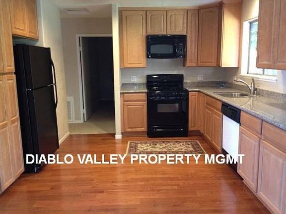 Very cute 2 Bedroom / 2 Bath Home with 1 Car Garage. Kitchen includes Granite Counters, Maple Cabinets, Built-in Microwave, Dishwasher, and Refrigerator. Laminate Hardwood Floors in Living Room and Kitchen. Central Heat and Air. Manicured yards. Washer/dryer included. Tenant responsible for yard maintenance. Owner may consider small pet with additional deposit. All rental applications need to be submitted through our website. We do not accept applications or credit reports through Trulia or Zillow. Diablo Valley Property Management DRE# 01290636 1 YEAR
