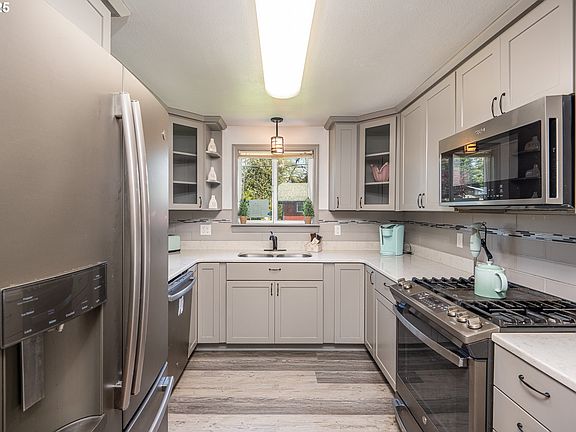Only 1.7 miles to Autzen Stadium! This home features an updated kitchen with beautiful gray cabinets. The living and dining areas have laminate flooring, a wood fireplace and large windows overlooking the front yard. There are two full bathrooms. The primary bedroom features a sliding door to the back patio. There is a ductless heat pump with multiple heads and an updated furnace in garage.The property may qualify for seller financing (vendee). If property was built prior to 1978 the potential for lead based paint exists.