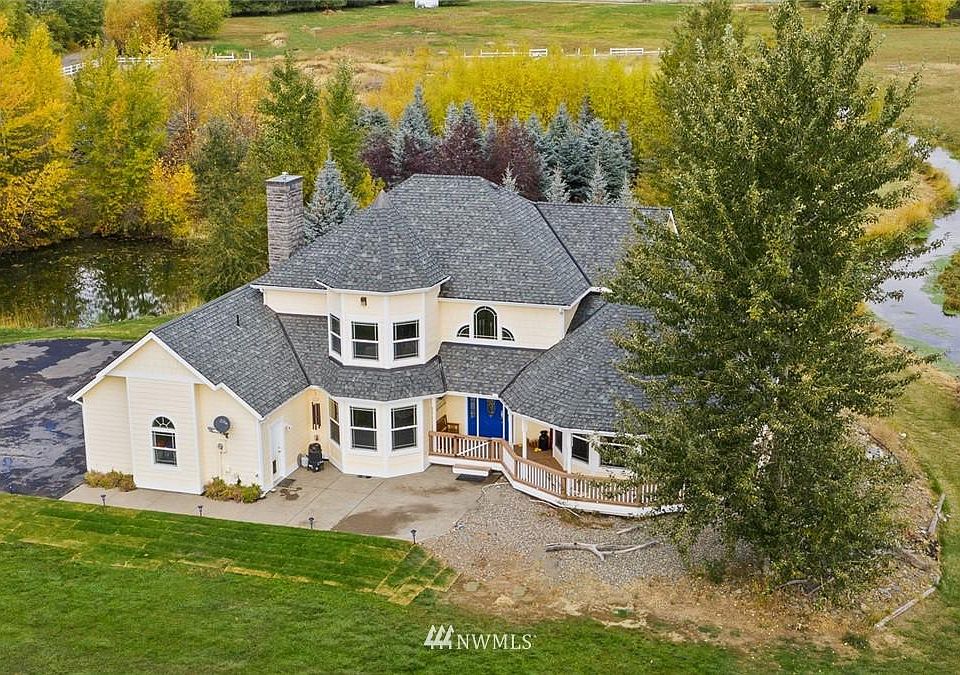 Welcome home to this custom Victorian inspired home on 5.84 Acres with creek & ponds. Easy freeway access & close to town. Spacious shop for all your toys or a large RV. Enjoy views from all directions from the wrap around porch. Look over the creek & watch the mountains change color as the sun sets. Abundance of wildlife year-around for your enjoyment. Pasture for horses. Relax in the great room with gas fireplace, kitchen is set up for large gatherings with island & granite countertops. Fresh interior paint, updated carpet & exterior paint, hardwood floors. Oversized primary suite with dual vanity, jetted tub, walk-in shower & walk in closet. Plus self sustaining solar panels produce a surplus of electricity. Take a look today!