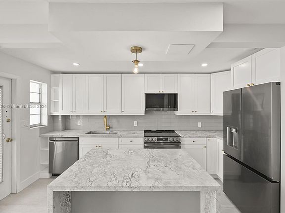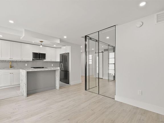 Welcome to this beautifully renovated 2 BD, 1.5 BA condo that combines contemporary design with functionality. The layout boasts abundant natural light from large south facing windows w/ light flooring throughout. Highlighting sleek finishes, the kitchen features quartz countertops with a center waterfall island, custom white cabinetry with brass hardware, and high-end LG stainless steel appliances. The living room is inviting with a convenient built-in TV mount, and adjacent to it is a flex bedroom enclosed with striking glass walls offering versatility—perfect for an office, studio, or guest space. The spacious primary offers large built out closets with a private balcony over looking Lincoln Rd. Ideal for owners looking to live year round or investors looking to rent out immediately.