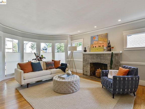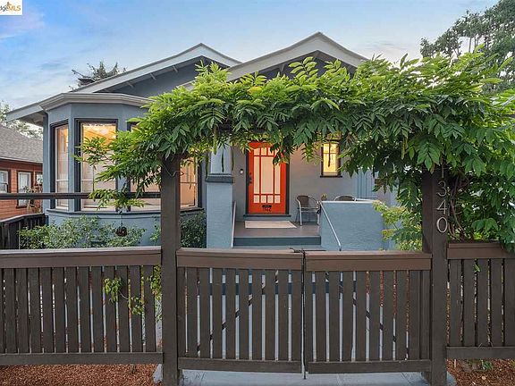 This oasis is nestled in North Berkeley's Gourmet Ghetto, steps from parks, the library, markets, public transportation, shops and cafes. Through an inviting entryway the living room features wall-height bay window and original fireplace. Off the dining room, with a gorgeous built-in, a short hall leads to three bedrooms and a full bath. A spacious remodeled eat-in kitchen has abundant countertops and high-end stainless steel appliances including a Thermador stove. A few steps down from the kitchen is a plus room with half-bath that works great as a private guest room or office. Double french doors draw you directly from the kitchen to a level-out redwood deck with space for a large table, a grill and a full-sized in-ground pool and jacuzzi. The heated pool was highly prized by the sellers and used from April through November.