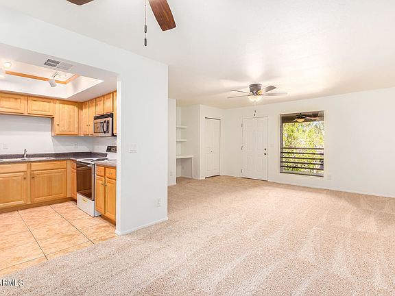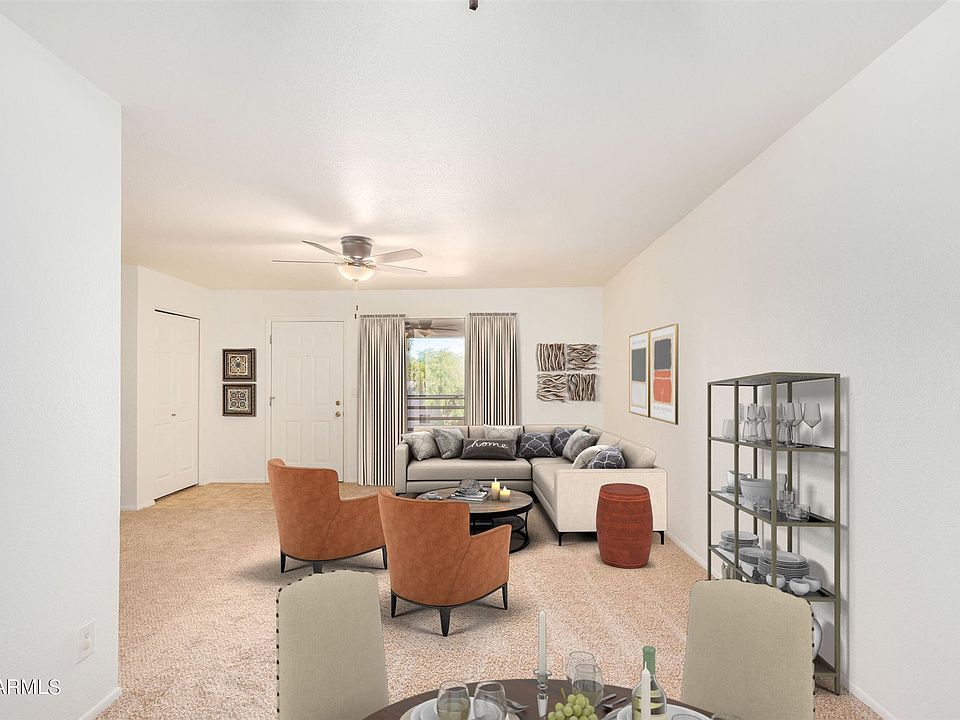 Charming end unit with brand new carpet, paint & ceiling fans in living space. Enter through your spacious private balcony with a separate laundry room with extra storage. The open living/dining area includes a closet and desk area. Kitchen has lovely natural wood cabinets. Master bedroom includes two closets, view of the mature common area landscaping plus access to the bathroom with a garden tub. This gated community has wonderful amenities including a pool, clubhouse and BBQ areas. Located in a fantastic part of NE Mesa with loads of cycling, hiking, golf, lake and river activities nearby. Don't miss the opportunity to own a little slice of paradise in a fabulous neighborhood close to schools, restaurants & shopping!