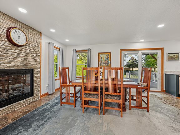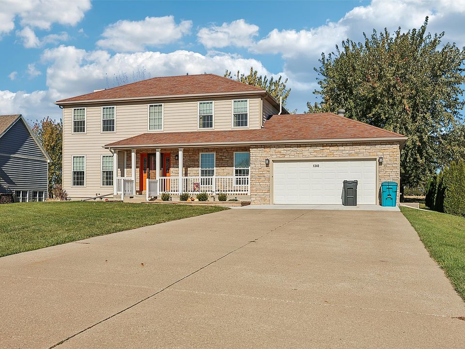 Alleman Estates awaits you! Quiet country living, in this 4BR 2 story, 3 bath home, 2 car att. gar, located on 1/2 acres, privacy, backs to cornfield. The home greets you with lovely landscaping, covered porch, and stone facet on garage, maintenance free siding. This home boasts updates galore. Roof, siding, stone Pella windows, flooring, custom kitchen, soft close drawers, quartz, newer appliances. New furnace, new septic, new radon mitigation installed. Updated bathrooms. Formal room/office, main floor family room, generous eating area with stone, direct vent gas fireplace. The basement is finished, family room down, egress window, storage, giving this home approximately 2,400sf of finished living. Outdoor living includes a large newer composite deck, covered with cedar pergola. The backyard has emerald arborvitaes for privacy. Relax back here, and watch the corn grow. This is a concrete patio, and a nice large storage shed that remains. The homes at the Estates rarely come up for sale, so do not miss this. Quick possession. Call today to see!