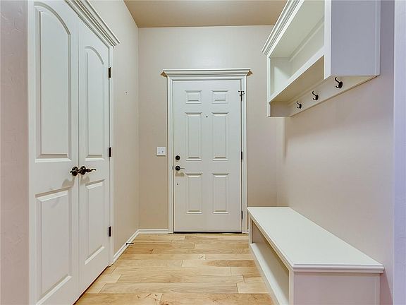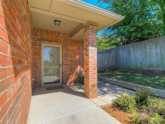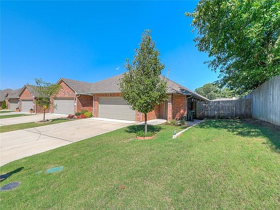 Live the low maintenance lifestyle in Bradford Parke. Exterior paint and yardwork included in HOA. This spacious home is perfectly designed with wheelchair accessibility! Rooms are very spacious and extremely open. Wide hallway and doors! No step up from garage to house or into shower. High ceilings! Tile and wood floors throughout with carpet in the bedrooms. Massive living/dining/kitchen all open to each other. No barriers to block complete ease of mobility. Blinds on all windows, gas stove, sunroom with exterior door and perfect fenced yard for privacy. This is a must see if the beautifully maintained community of Bradford Parke, just minutes from Tinker AFB, shopping, highway, and medical facilities.
