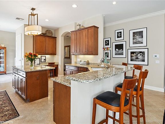 Immaculately maintained and exceptionally well appointed Coach Home, ideally located in North Naples only minutes from the pristine Naples beaches, large array of restaurants and great shopping areas including Waterside Shoppes and Mercato. This elegant and spacious home has 3 bedrooms, 2 full bathrooms and includes many upgraded design features. Gourmet kitchen with large center island, breakfast bar, updated stainless steel appliances, wood cabinets, granite countertops and large pantry. Crown moldings, window casings, plantation shutters, private elevator and impact resistant windows and doors. The spacious Master Suite features custom built in closets, private bath with dual vanities, raised wood cabinets, walk-in shower and jetted tub. Amenities include a private Clubhouse with catering kitchen, outdoor grilling area, fitness center and resort style heated pool and spa. New tile roofs and exterior painting completed in late 2021.