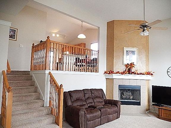 Welcome into the open great room with cathedral ceilings, abundant windows & a wood burning fireplace. Private master suite with a walk-in closet & master bath with two vanities, whirlpool tub & lg. separate shower. Walk out basement boasts a large family room w/ a pool table, full bath & stubbed for a wet bar. Office & store room located in the lower level. Deck off the kitchen & dining area. Located on one of the largest lots in a newer subdivision & in a cul-de-sac. In-ground sprinkler system for entire yard. Exterior painted summer 2015, walk-out basement family room walls repainted October 2015. House is move-in ready!