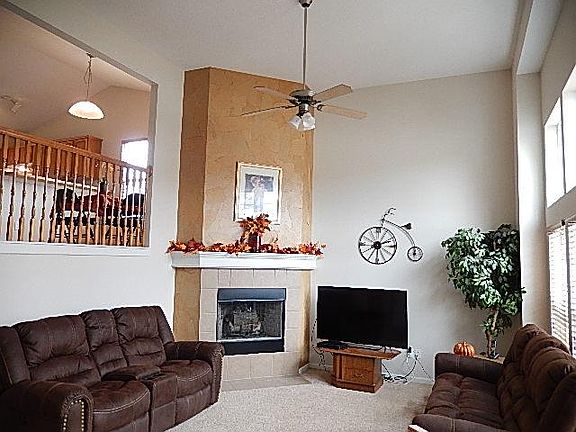 • Features: Carpet, Ceiling Fan(s), Fireplace