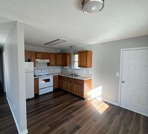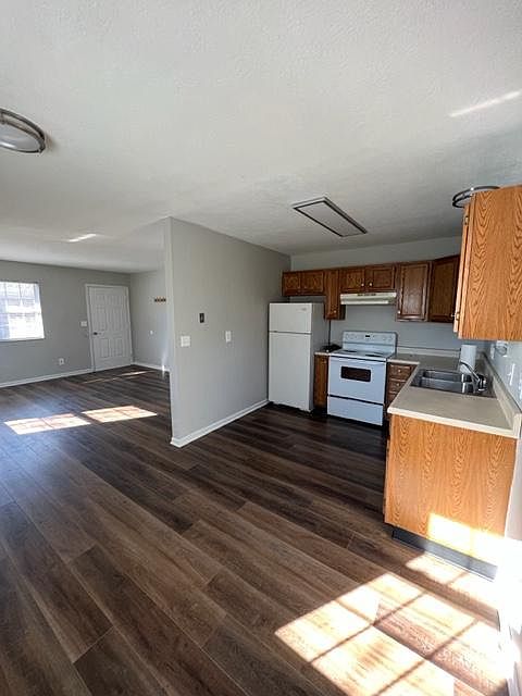 The home has been completely repainted, has all new door and cabinet hardware, and has brand new wood flooring throughout. Renter pays all utilities (water, sewer, gas, electric). No smoking allowed. 2 pets allowed. 2 parking spots allowed. Pet rent is $25 per month per pet. Washer & dryer set included in rent.