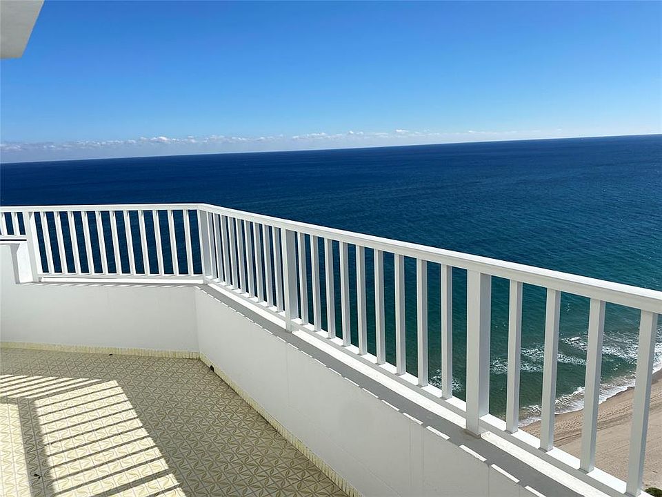 SE facing penthouse in luxury building on the sand. Spectacular ocean and sunrise views. Oversized balcony perfect for entertaining, dining or just chilling out! Furnished unit with split bedrooms, 2 bths, eat in kitchen. Amenities include heated pool, 24 hr. manned guard/security, sauna, gym, social room, library and garage parking. Building has completed concrete restoration and is in the final stages of elevator modernization.
