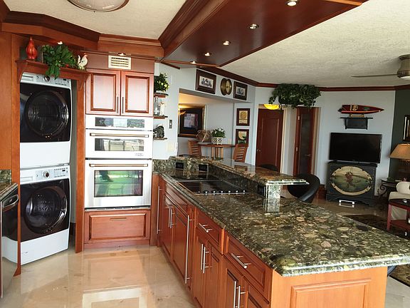 This condo will blow you away! There isn't another one like this completely remodeled home with attention to every detail. A wall was removed to open the very upgraded kitchen to the living area. Top of the line stainless steel appliances, beautiful granite, 6 burner Jenn Air range, convection wall oven. Both bathrooms are like being at a spa! Knockdown texture, crown moldings and large baseboards. Double door entry to foyer with beautiful inlay. Marble floors throughout. Impact glass. A wall of sliders open to the balcony for you to enjoy the boats on the Intracoastal. This is truly one of a kind!