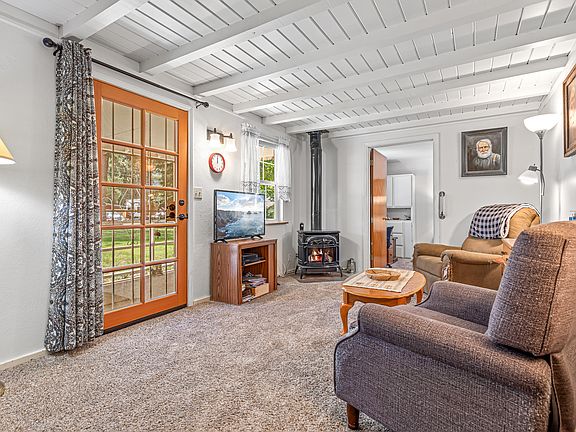 Nestled on a spacious oversized city lot on a dead end street, this delightful two-story cottage has so much charm and character. Boasting two spacious bedrooms, bath with tile shower, bright and cheery kitchen with tile countertops and backsplash. All the appliances stay with the home. Nice sizes mud/utility room with additional cabinets for storage. Covered front and back porches to sit and enjoy the beautiful mature landscaping. Patio area in the fenced backyard is great for entertaining. Single car garage, carport and storage shed. Plenty of room for all your toys including your RV or boat. Enjoy the serene surroundings while being just moments away from local amenities and Portola Park. Buyer to perform their own due diligence into all aspects of the property including condition and intended use