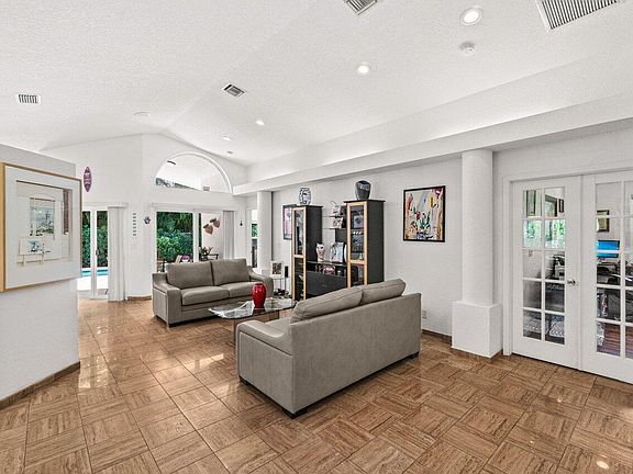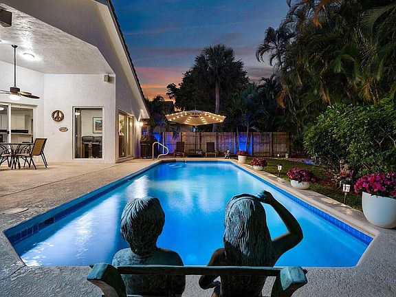 Spacious and bright 4 bedroom, 2 bath home, situated in East Boca in the highly sought-after Addison Mizner K-8 school district. Home boasts high vaulted ceilings & 2 car garage. Eat in updated kitchen w granite tile countertops & full backsplash. The split floor plan offers versatility and the southern exposure ensures ample natural light. Multiple sliding glass doors lead out to covered patio and sparkling pool. Complete privacy due to beautiful trees, hedges and fully fenced yard. Updated roof, pool heater & hurricane impact windows. New A/C & W/H. Short drive to great restaurants, beaches, parks, Mizner Park, & Boca Town Center. Walking distance to neighborhood Pine Breeze Park. Enjoy your own tropical paradise! Easy access to I-95, US1, Turnpike & Sawgrass Expressway. Home's location offers Boca Connect shuttle to whisk you downtown, including Mizner Park and the Brightline station. Close to boat/canoe/kayak launches and Tri-Rail station. Extra parking pad can store boat or can easily be converted to a circular driveway. Can park many cars on the property. No HOA