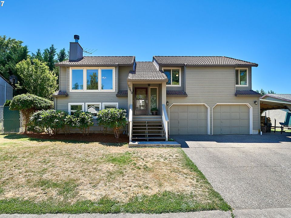 Fantastic family home with separate living and family rooms. 1845 sq ft, 3 beds plus a den and 3 baths. SS kitchen appliances, refrigerator is brand new. Beautiful laminate flooring throughout with a tiled entry and stairs. Abundant storage. Mini-splits for heating/cooling on both levels. Garage is extra deep on one side for workshop. Covered deck off dining room leads to fenced backyard with raised garden beds.