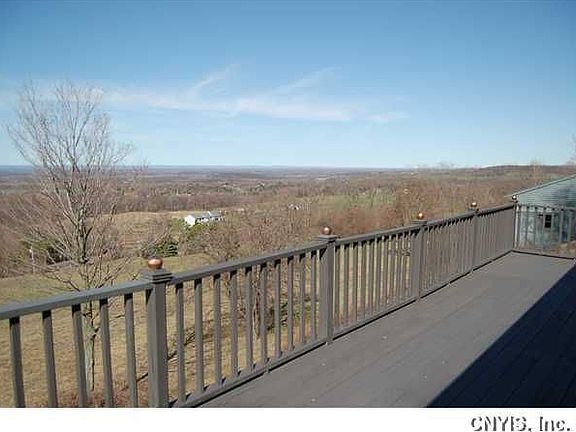 Welcome to "Hemlock Hill" one of the most unique & inviting homes nestled on a 22.58 acre hillside setting with spectacular views. Walls of windows (including two palladium) & beamed vaulted wood ceilings can be found here. Perfect hide-a-way offering two master bedroom suites with full baths, a brick hearth wood stove & a select stone woodburning fireplace, two levels with full kitchens, loads of built-ins, one car attached & 4 car detached barn/garage & horse stalls. Screened porch & multi-decks. Amazing in every way. Panoramic view for miles with gorgeous view of Oneida Lake! A rare find!