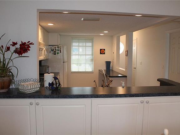 A rare condo in the sought out area of Deep Creek, includes a garage and lower level location. This whole condo was remodeled in 2004 including all new flooring, new kitchen, and both bathrooms upgraded. The kitchen gleams with attractive cabinets, giving it a clean and modern look. You will enjoy the built in desk area in kitchen, providing extra counter space. Beautiful, neutral tile flows throughout the main living areas while carpet keeps you cozy in the bedrooms. The master bedroom has ample closet space and the bathroom provides you with a walk in shower and high counter tops. The guest bedroom has it's own bathroom attached and doubles as a sitting room. The dining area is large enough for a dining table, chairs, china hutch, and a built in dry bar. The open floor plan makes this condo feel larger than it is. Outside you will enjoy the screened lanai that runs the length of the condo, a full sized laundry room, along with an added on patio area that has attractive vinyl fencing and provides you with a golf course view. The front screened porch gives you a pool view and is directly across from the community grill. There is also a community garage that has tools, ladders, and other items that can be borrowed. This condo includes all the furniture while the one car garage has a window and built in storage shelf. These units don't last long so don't hesitate to call for your own private showing.