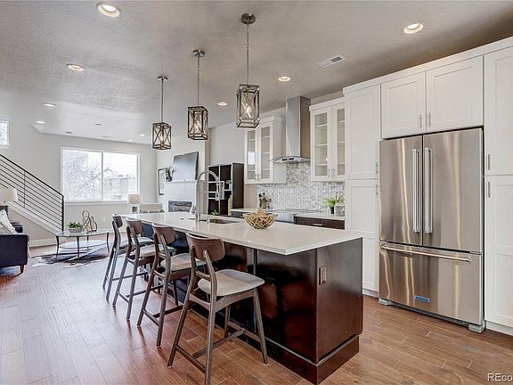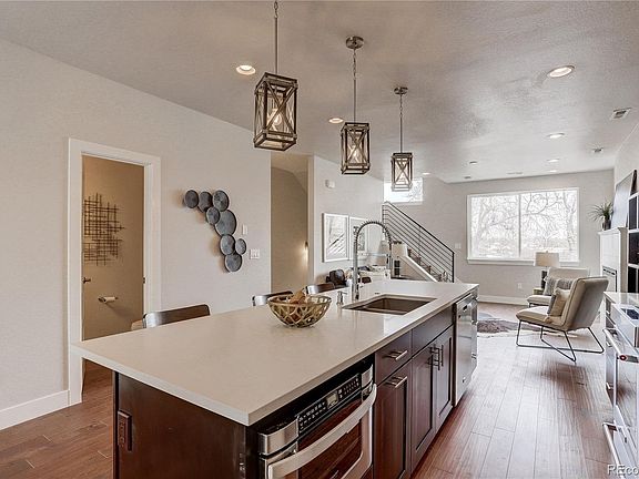 2020 new-build townhouse with two-car garage and sun deck with views of downtown Denver and the mountains. Spacious master bedroom with en suite bathroom. Full-size washer and dryer are on the same floor as the master bedroom and second bedroom. Office/guest bedroom on the bottom floor has it's own bathroom. Freshly painted bedrooms. Spacious living area with kitchen counter seating and dining area. Garbage and water are included. Renter is responsible for gas, electric, internet/cable, and Ring doorbell service. No smoking is allowed. Small dogs up to 20lbs are allowed. Minimum 6-month lease required. Tenant is responsible for keeping the deck area clear of debris. Gas BBQ and Fire pit propane renter's responsibility to replace/refill.