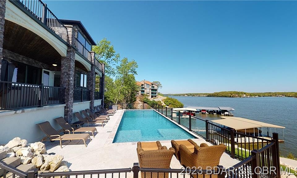 The view is big, the location is perfect and it's quality from top to bottom! You'll love the large swimming pool, hot tub, game room, oversized 2 car attached garage, and the detached 4 car garage with a man cave. The view of the main channel is stunning, and there is 96 ft. of lake frontage. Located in the heart of Osage Beach at the 20-mile marker near the most popular restaurants, shopping and entertainment. This impressive, like-new home with 8 bedrooms and 6 baths comfortably sleeps 26 guests and has plenty of room for outdoor entertaining. Shown by appointment, don't let this opportunity slip away! Would you like to generate income while not using the home? This property has a great rental history.