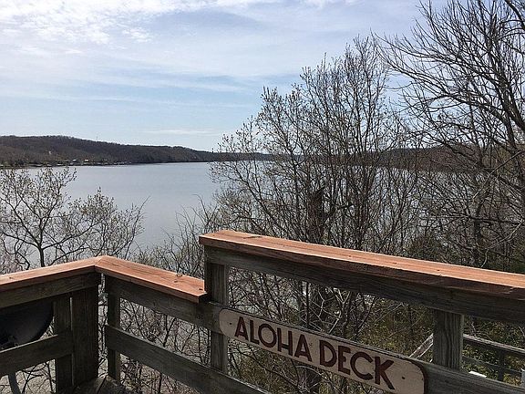 Lake front property on Coffman Bend about MM 52 Lake of the Ozarks, Osage Arm with large 0.568 acre lot and 140 feet of lakeshore. The house sits on hill overlooking the main channel of the Osage. The subdivsion is mostly populated with retirees and is on the quiet part of the lake. The upper level has a bedroom, walk in closet, bath, kitchen, and large open dining/ living area. The kitchen has an island with a range and oven. There is a balcony accessible from the upper level (the Aloha Deck) for enjoying the view with a cool beverage.The lower level is also finished and has one bedroom, a bathroom, laundry area, utility room, and a large open area (about 460 SF) that can be used as a recreation room or "bunk house" for guests. There is a large screened porch (approx 10x15) and a deck accessible from the lower level. The lower level also has a wood burning stove that can heat the whole house. The windows are Andersen thermopane and we put 12 inches of blown insulation in attic so it is very cozy. There is a 440 square foot detached double garage wired for use as a workshop. There is also a 10x 10 gazebo at lake level. There is a cargo trolley to transport coolers and gear from the house to the gazebo that can be reactivated. There is a concrete anchorage point for a dock in very deep water so it can be used even when the lake is at low levels. The roof is less than five years old and the house and garage are vinyl sided so painting is not required. Steps down to the lake have several landings to rest and view the lake. We found that we got used to the steps in short order and saved us going to the gym for exercise. The property has a septic system and deep water well that is shared with two neighboring property. Costs about $150 per year for electricity for the well. Partially furnished. Needs paint, carpet replacement, and some cleaning up of brush to give best lake view. Otherwise ready to go, our long term tenant just moved out and we decided to sell it.