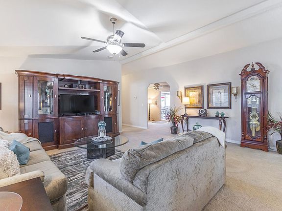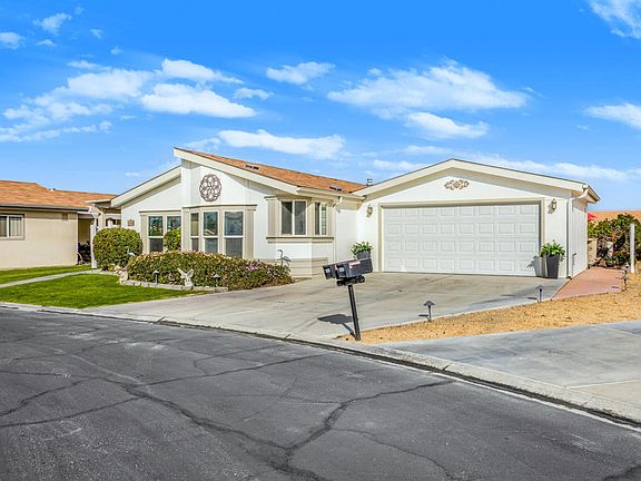 Welcome to this exquisite Manufactured home nestled in the serene Desert Sands Park 55+ Community. This 2-bedroom plus den/ office residence boasts the perfect blend of comfort and style. As you step inside, you'll be greeted by a spacious formal dining room, perfect for hosting gatherings and enjoying special meals with loved ones. The large living room provides ample space for relaxation and entertainment. The master bedroom is generously sized and offers a walk-in closet for your storage needs. The attached bathroom is designed for comfort and convenience, providing a relaxing space for your daily routines. The kitchen offers plenty of storage with freshly updated cabinets, ensuring you have ample space for all your culinary essentials. It also features a convenient pantry and a separate laundry room. For your convenience, this home comes with an attached 2-car garage, providing secure parking and additional storage options. Situated on a peaceful cul-de-sac within Desert Sands Park, you'll enjoy a sense of community and privacy. The extended covered patio with a built-in outdoor kitchen is perfect for enjoying the warm desert evenings, hosting BBQs, and creating unforgettable memories with friends and family. Don't miss the opportunity to make this exceptional Manufactured home yours. Come and experience the Desert Sands Park lifestyle, where comfort, style, and serenity converge in a remarkable desert setting.