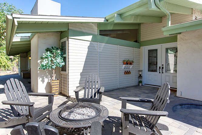 re you looking for a home with a custom look and a huge lot? Welcome to this gorgeous Frank Lloyd-Wright-inspired contemporary home on almost a half-acre. This stylish home sits high-up on a tree-lined small street of only four other homes. Outstanding location just minutes to the freeway, but has the atmosphere of the country. Gorgeous interior with vaulted ceilings, high-end wood look floors, french doors in the living room and granite in kitchen. 2-car garage is extra wide and deep with ample storage.