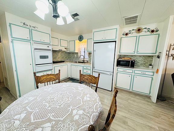 Welcome to your dream winter retreat at Shady Acres RV Park in Yuma, Arizona! This charming, completely furnished 2-bedroom, 1.5-bath home offers the perfect blend of comfort, style, and convenience in a tranquil 55+ community. With a fully-equipped bonus room ready for guests, this home ensures there's ample space for hosting family and friends. Inside, you'll find beautifully updated flooring throughout, creating a warm and welcoming ambiance that's truly move-in ready. The open living area flows seamlessly into a spacious kitchen, fully outfitted for all your culinary adventures, and a cozy dining nook ideal for intimate meals. The bedrooms features generous closet space, and the bonus room can serve as a guest bedroom, office, or hobby space. Outside, you'll enjoy two large sheds, both stocked with tools and seasonal decor, ready for all your storage and creative needs. The carport offers convenient, shaded parking. A paved patio allows you to savor Yuma's sunny skies and mild winter weather year-round, with temperatures that make outdoor living and gatherings a joy. Shady Acres RV Park provides a range of amenities that include a heated pool, hot tub, shuffleboard courts, and a welcoming recreation hall with planned social activities like bingo, crafts, and pancake breakfasts. Take advantage of nearby shopping, dining, and local attractions like the historic Yuma Territorial Prison State Park. Don't miss this opportunity to own a slice of paradise in a community that values relaxation, connection, and an active lifestyle!