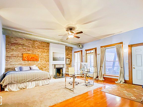 Beautiful oversized 1 bedroom, 1 bathroom in historic West Loop elevator building. Amazing location on Madison near all the local West Loop shops, bars and restaurants. Just one block to Skinner Park and dog park, easy access to the expressway, loop, Blue Line and more. Unit features include: - Spacious and sunny south-facing unit with exposed brick - Beautiful fireplace with custom stone mantle - Updated kitchen with breakfast bar - Stainless steel appliances, dishwasher and microwave - Big bedroom with custom stone mantle fireplace - Large master bedroom with 2nd fireplace - 12 foot ceilings with exposed ductwork - Laundry in unit - Large marble bathroom with double sinks - Spacious private balcony / patio - Central air conditioning and heat - One garage parking space and extra storage included - Cats & small dogs welcome