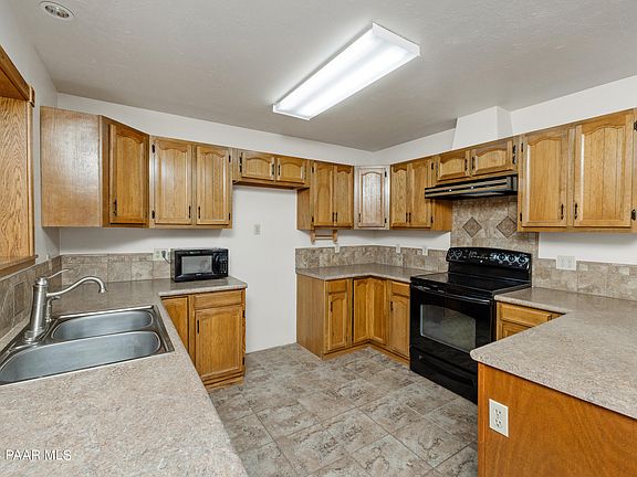 This well maintained home sits on 2 acres and has its own well and features 5 garages backing up to BLM Land! Very Private/Quiet location. Detached 3 car fully insulated garage with 220 and heated craft studio/hobby room along with a 2 car attached garage. There is an RV dump and an RV electric plug. Lots of parking on property. Home has an open floor plan with lots of light and hardwood floors in main living area.3 Bedrooms, 2 baths, office/den and a mud room/Arizona room.Master bathroom has a heated floor and a deep tub for soaking.