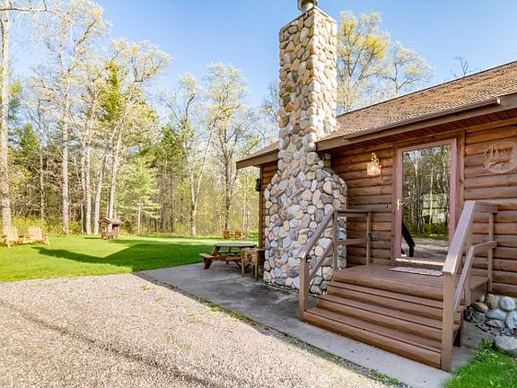 50 feet of shared frontage on the Manitowish Waters Chain and an adorable northwoods home tucked away in the woods plus a 1296 sq foot garage! What more could you ask for!! Nestled on a private level 1.50 acre lot sits this 2 bedroom (3rd bedroom in LL has no egress), 3 bath half log sided dream! Main floor has great room with knotty pine cathedral ceiling, wood burning stone FP, hardwood floors, 2 sliding doors leading to the concrete patio, open kitchen w/center island, master bedroom suite with private bath, 2nd bedroom and full bath. Lower level has been finished and includes a family room, 3rd bedroom (no egress) and full bath. Exterior grounds are gorgeous with stone fire pit! Just a 2 minute walk to the lakefront where the shared dock provides access to the MW 10 Lake Chain! Currently in a rental program for added income! Located just off Hwy 51 for easy access and close to all the amenities you love! Don't wait, this won't last!