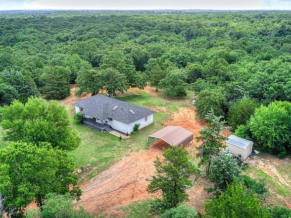 PARADISE FOUND! HORSES WELCOME! This MODERN/Ranch style residence has loads of updates. TRUE, SENSE OF PEACE on this sprawling, wooded 7.31 ACRES with walking trails and fishing pond. Home has been meticulously renovated featuring: NEW roof in 2020, NEW carpet, tile, & wood laminate, NEW interior doors, NEW kitchen appliances, NEW counters and backsplash, NEW lighting and electrical, updated plumbing(including water heater), NEW AC in 2024, NEW interior & exterior paint, landscape, and carport. MOVE IN READY! Well thought out floor plan offers comfort and character. EXQUISITE CRAFTSMANSHIP...natural lighting throughout with loads of custom storage. NEWLY Renovated Kitchen is a magnet for social gatherings open to the EXPANSIVE living area. Primary Retreat is spacious and privately located away from secondary bedrooms. Primary suite includes whirlpool tub, spacious walk-in closet, and ample storage space. LIVE THE GOOD LIFE in the country setting with easy access for commuters: 15 min to Edmond, 25 min to downtown and MWC(Tinker Air Force Base). GORGEOUS property. OPPORTUNITY AWAITS! WELCOME HOME!!!