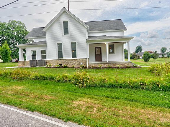 Welcome home to a delightful blend of Victorian charm and modern convenience. Built in 1895 and thoughtfully remodeled, this beautiful 3-bedroom, 2.5 bath home offers the character of a vintage farmhouse with updates throughout that buyer's love. Nestled on a spacious lot in a peaceful setting, this home features a detached 2-car garage with an attached cooled and heated workshop alongside a concrete parking pad that extends around for an additional outside patio. Inside, you’ll find a welcoming open floor plan with generous natural light, updates throughout, and cozy living spaces perfect for both everyday living and entertaining. Kitchen features rich butcher block countertops and island perfect for meal prep or casual dining, adding warmth and natural charm. Dining area has access to the trex deck and patio that gives a beautiful sunset view through sliding glass doors and an additional built in wet bar complete with wine cooler and custom red oak counter top to add more to the charm, including the hand crafted wood dining table that is included. Remodeled spacious second floor full bathroom with new vanity, custom tile floor and shower along with the remodeled main level full bathroom with a clawfoot tub, travertine marble and heated floor will have you relaxing in an instant and maybe in some feuds over bath and shower time! Whether you’re enjoying a morning coffee on the covered porch, relaxing on the trex deck or patio to wind down the day or working on projects in the workshop, you’ll appreciate the serenity and space this property offers. Located in the desirable Darmstadt area, you’ll enjoy the feel of country living with easy access to city amenities. Additionally, enjoy the new exterior downlights / new siding / new 2022 AC and HVAC / 2011 basement waterproofed / Senville Leto Eco Series heating and cooling unit in workshop / electricity and lighting throughout garage and workshop, inside and out / wood shop dust collector.