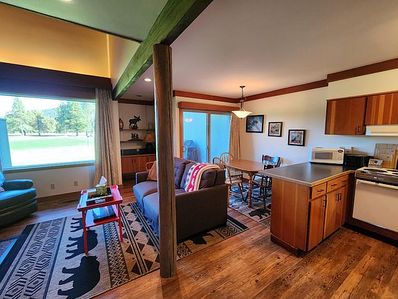 Are you a Golfer? A wonderful opportunity to own a golf course condominium overlooking the 18th fairway of the Big Meadow course. Black Butte lookout looms ever so prominently above in the near distance, seemingly close enough to touch. Main level features kitchen with view of the outdoors, dining area open to both the kitchen and living area with cozy and efficient woodstove. Both bedrooms are on the upper level and share a Jack-n-Jill bathroom with shower and an upper patio as well. Enjoy the spacious main level patio for summer relaxation and year round BBQing while watching the golfers zero in on the 18th flag. Fully furnished, ''as is.''